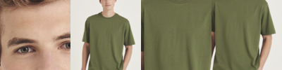 100% ringspun combed cotton. In transition to using organic cotton. Enzyme and silicone washed. Fitted style. Narrow ribbed collar with elastane. Side seams. Twin needle sleeves and hem. 60°C wash.